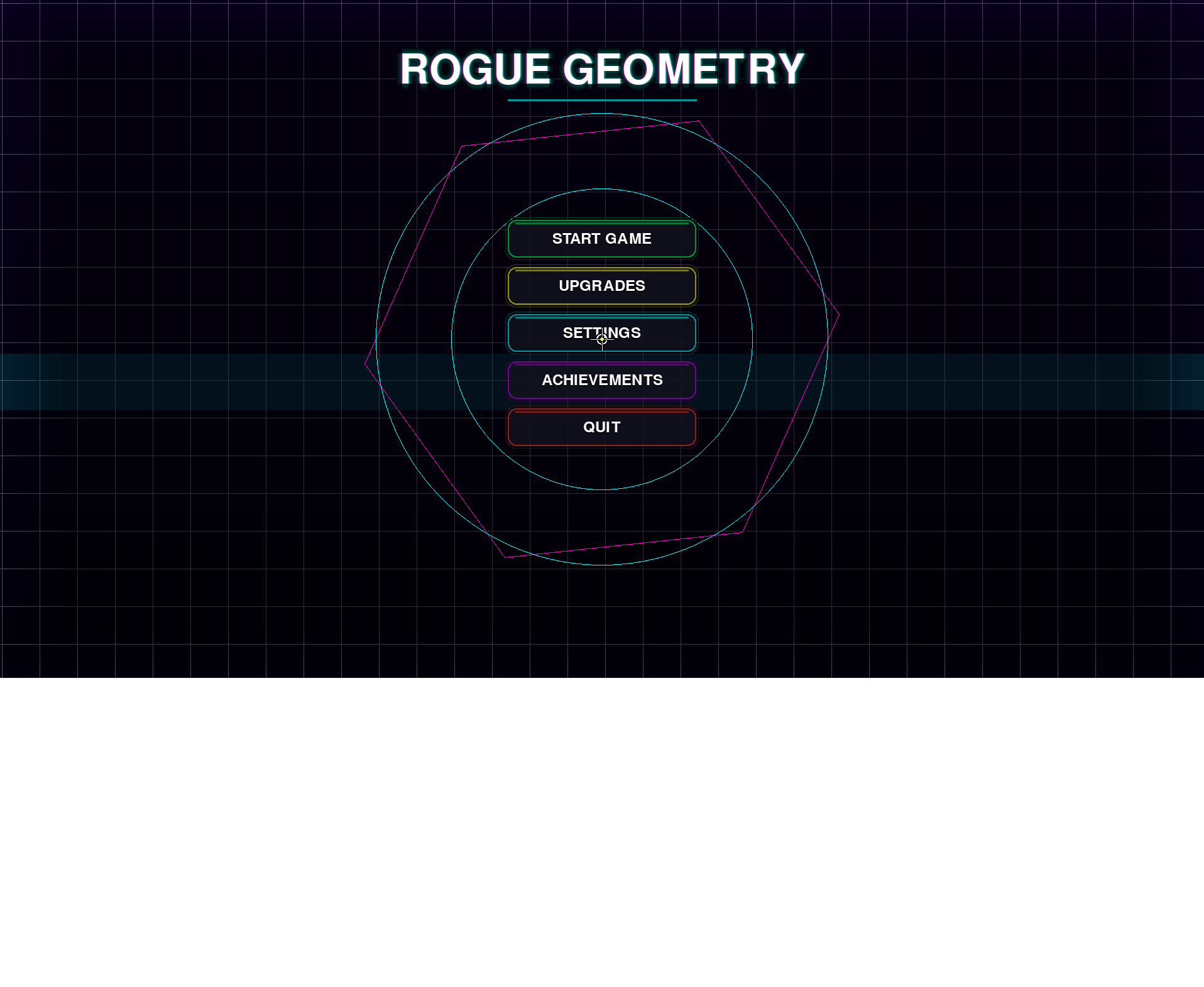 - In Rogue Geometry, death is just the beginning. Though your ship may be destroyed, your meta-progression is saved. Return to your hangar stronger than before, ready to venture further and unlock the 100+ achievements that await.